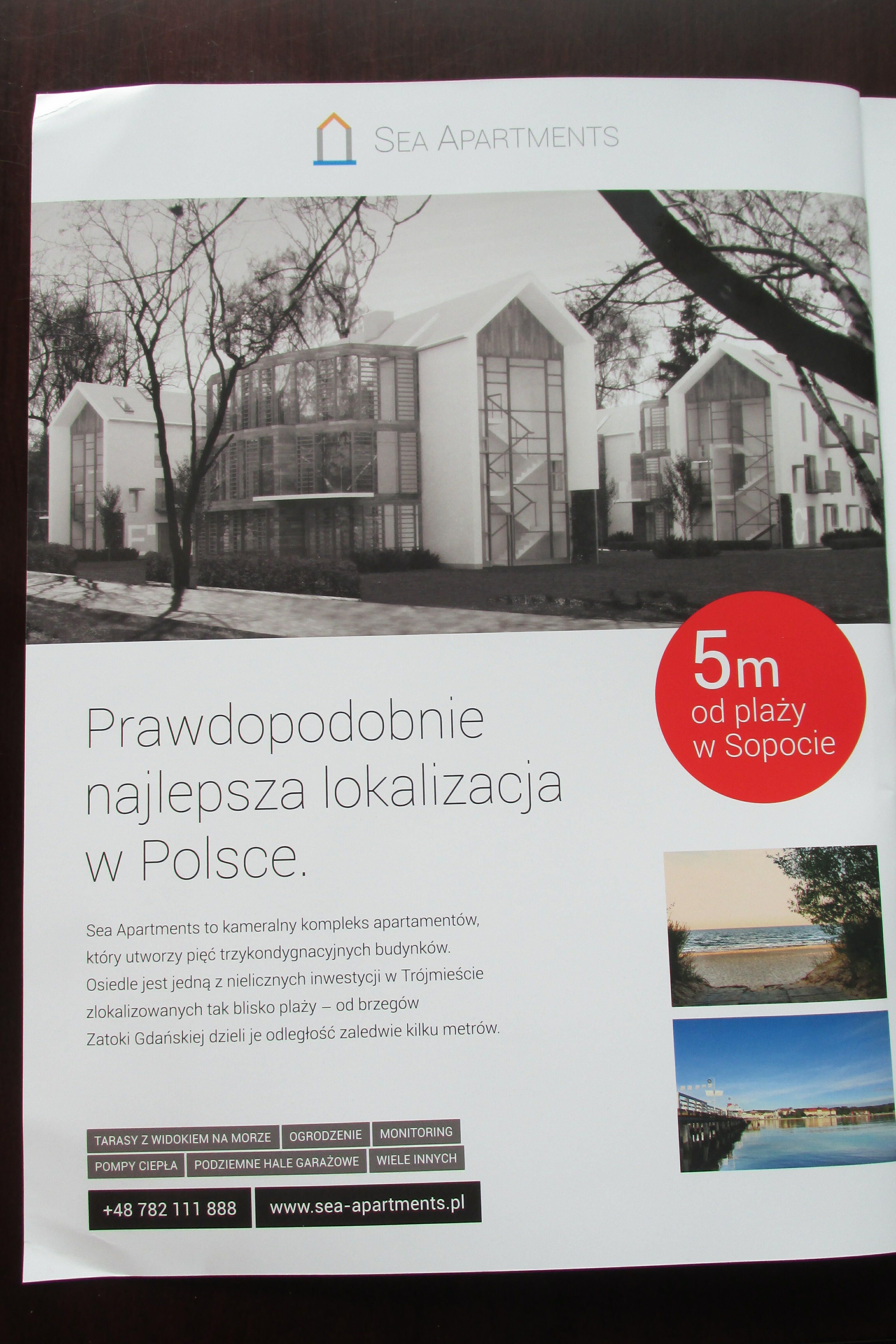 Reklama inwestycji położonej zaledwie 5 metrów od plaży pojawiła się na łamach najnowszych numerów magazynów "Weranda" i "Weranda weekend".