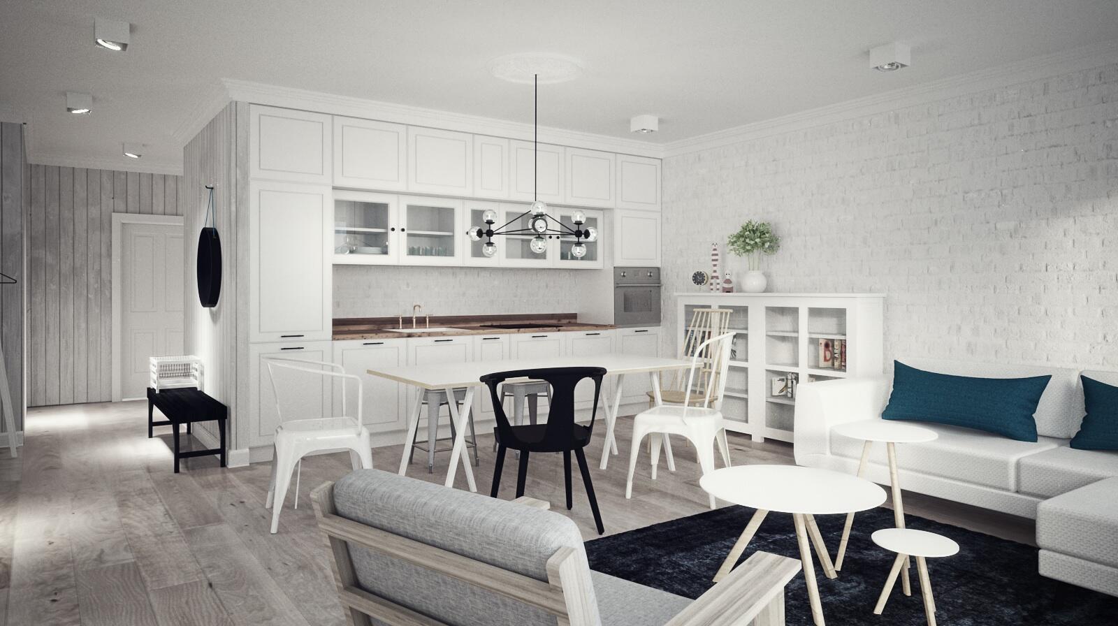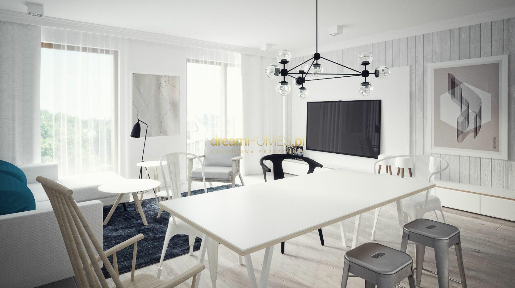 Apartament o powierzchni 80m2 w stanie deweloperskim z przestronnym tarasem o powierzchni 50m2. Na zdjęciach zostały przedstawione przykładowe wizualizacje wykończenia apartamentu.